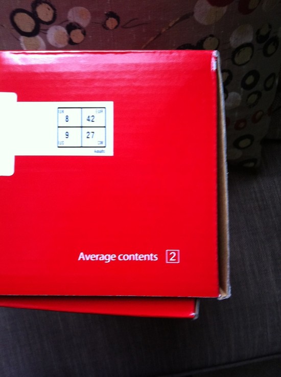 The first as you can see here is “Average Contents 2” … as opposed to what? do they sell single shoes or shoes for Jake the Peg? (you have to be my age to appreciate that)