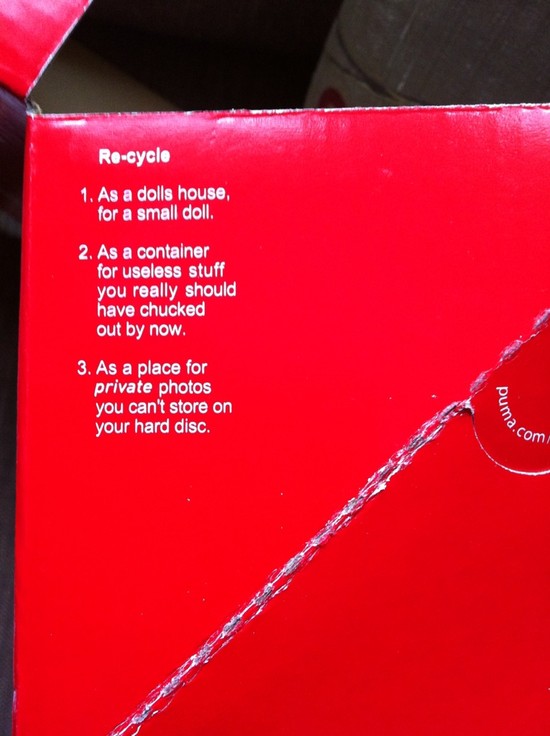 After my serious posts of late I thought I’d end the year with a bit of humour… Bought my son a new pair of Puma trainers yesterday and I wanted to share a couple of gems that I discovered on the box.