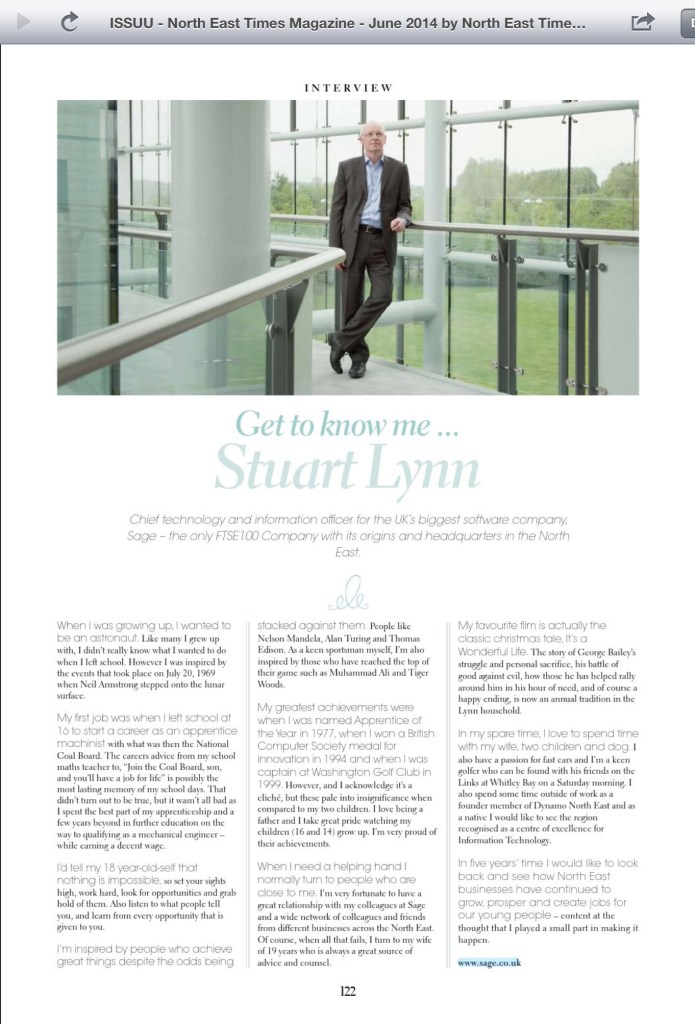 Five years ago today I featured in the North East Times magazine when I worked as Chief Technology and Information Officer at Sage.