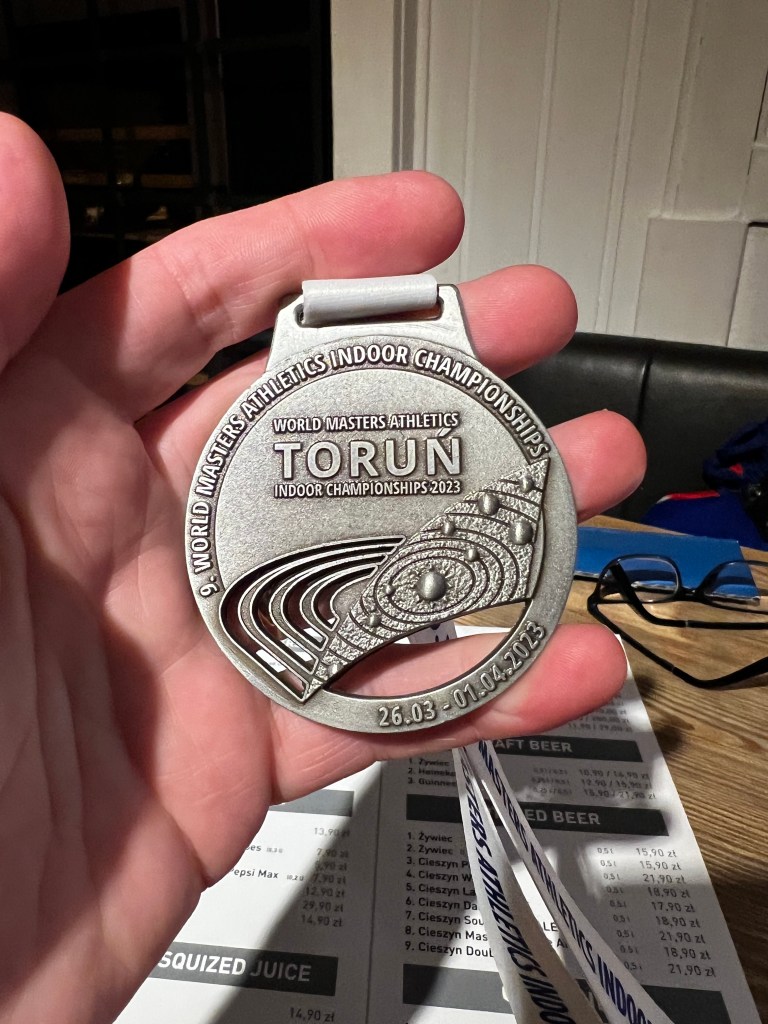 My first experience of a World Masters Championship’s was in Torun in March 2023. This would see me compete in three events, the M60 400m, M60 200m, and the x60 4x200m mixed relay.