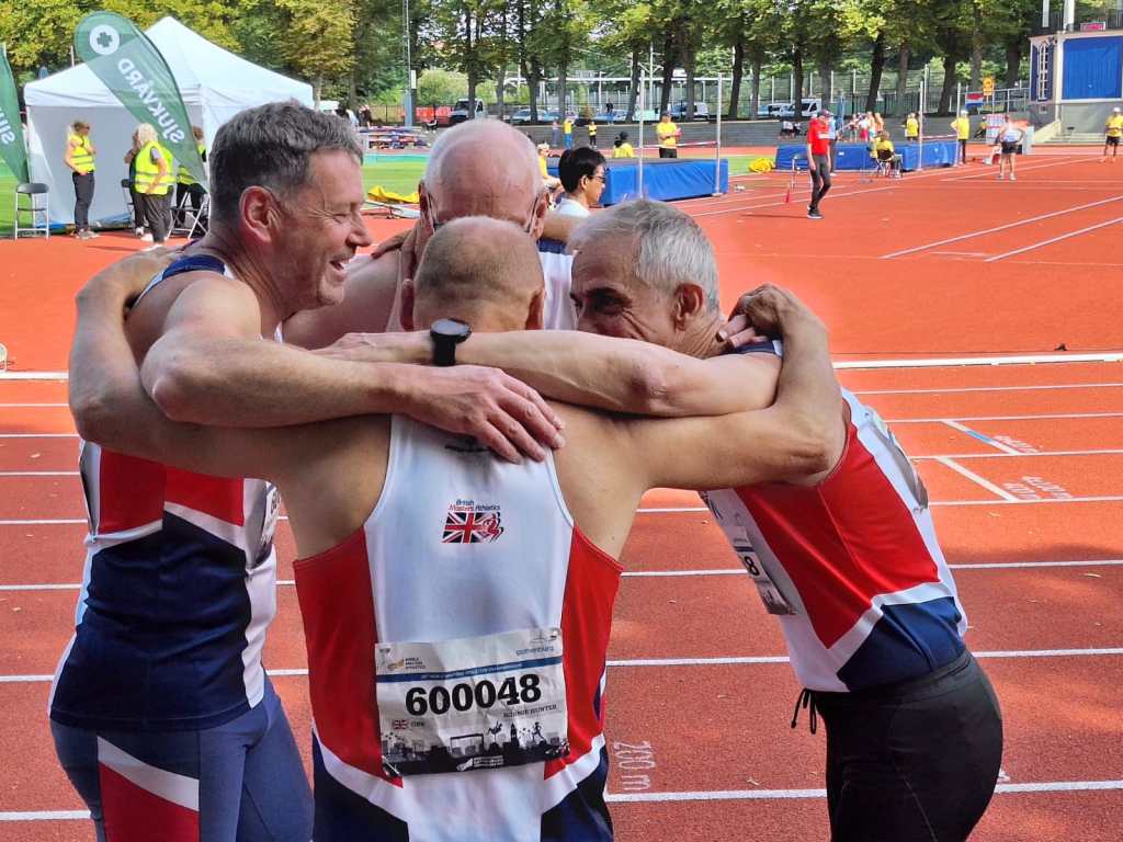 Then it was my turn. Steve’s handover was clean, I remember the feeling of relief, and I set off around the bend, giving it everything I had. I could feel the competition right there with me: Germany, the USA, Spain. All of us in with a chance. There was no time to think, just pure, raw effort. The curve came and went in a blur, and all I could focus on was getting the baton into Brian’s hands. Another wave of relief as the handover was clean. Now it was down to Brian to bring it home.