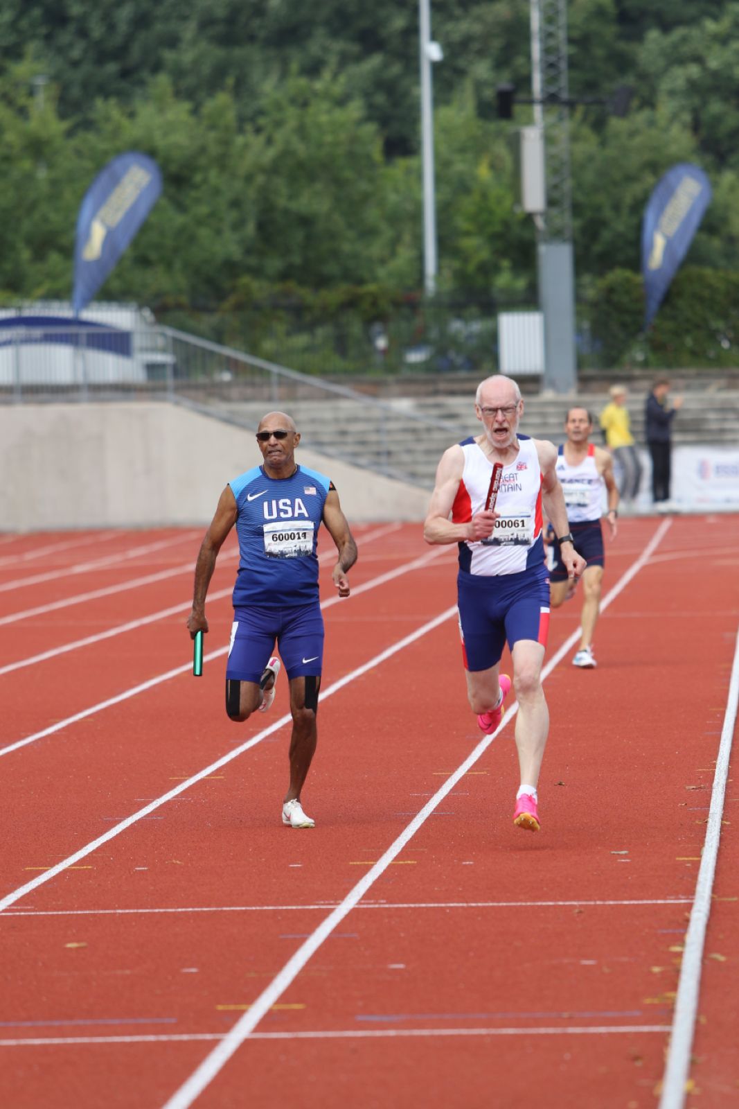 The 4x400m relay holds a truly special place in my heart, and it all began in 2022 at the British Masters Championships in Derby. That year, I was competing in the 400m individual race when, for the very first time, I managed to break the 60 second barrier. It was a thrilling race, especially since I was up against a fierce competitors, John Wright and Peter Ilo. That moment in time gave me the belief that I could compete with the best in the world over 400m.